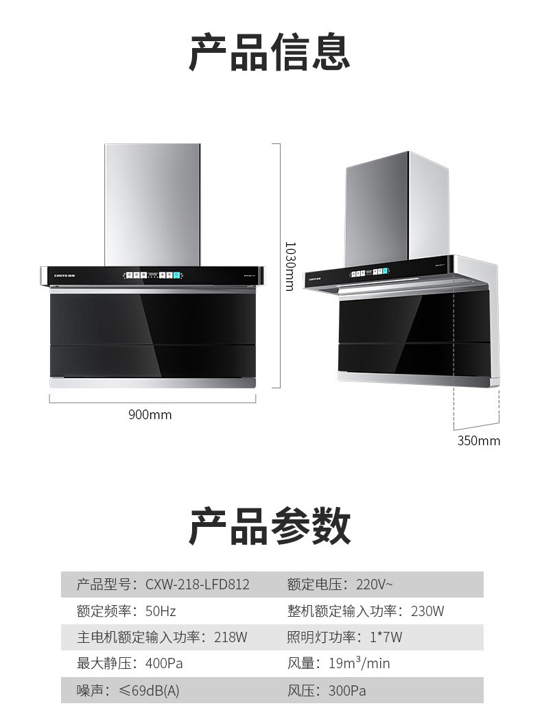 前鋒平板吸油煙機(jī)LFD812