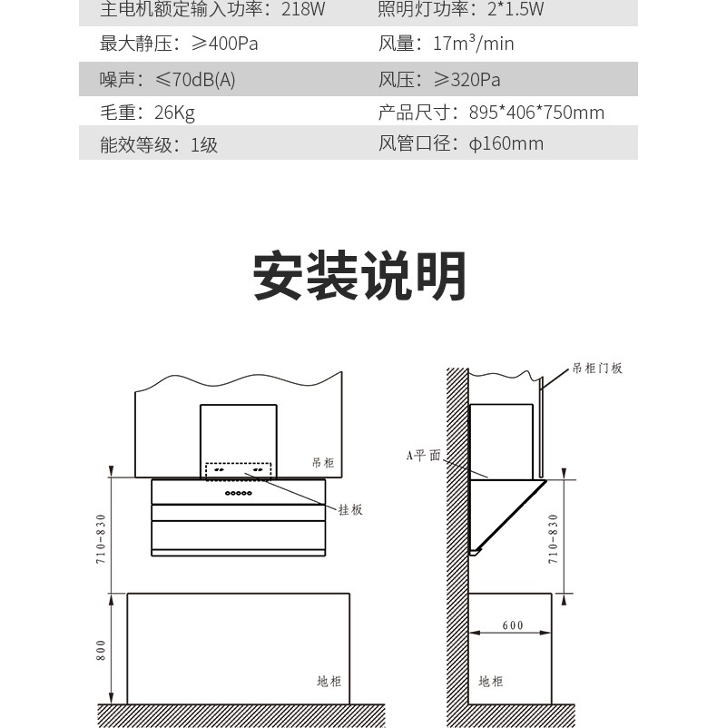 前鋒近吸式吸油煙機(jī)E723
