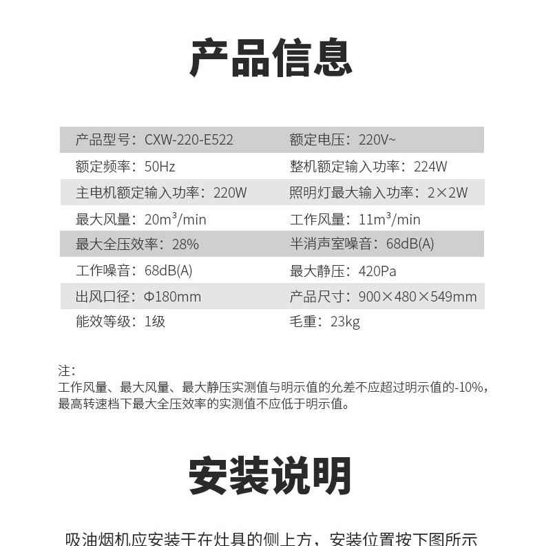 前鋒歐式吸油煙機(jī)E522