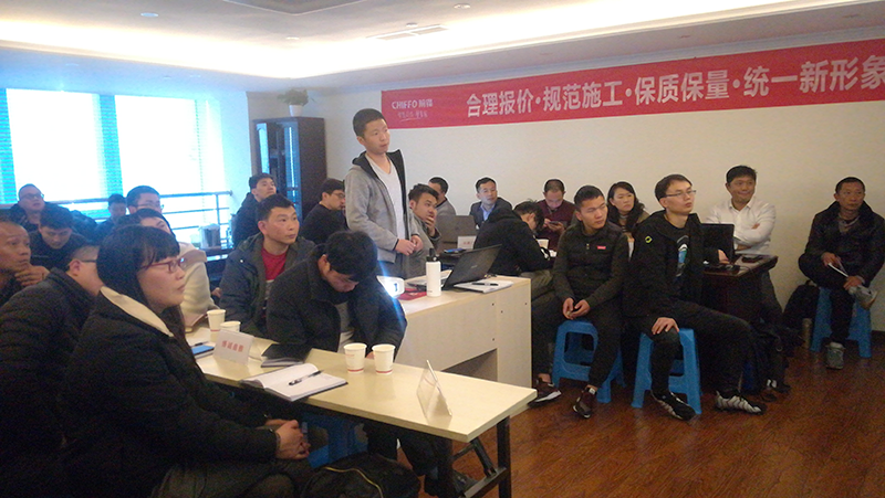 為期兩天的培訓(xùn)會本著提高“前鋒”品牌店面裝飾裝修工程水平,全民提升施工時(shí)效,呈現(xiàn)工程質(zhì)量,以及“合理報(bào)價(jià),規(guī)范施工,保質(zhì)保量,統(tǒng)一新形象”的主題為參會的二十家公司人員展開統(tǒng)一培訓(xùn)。
