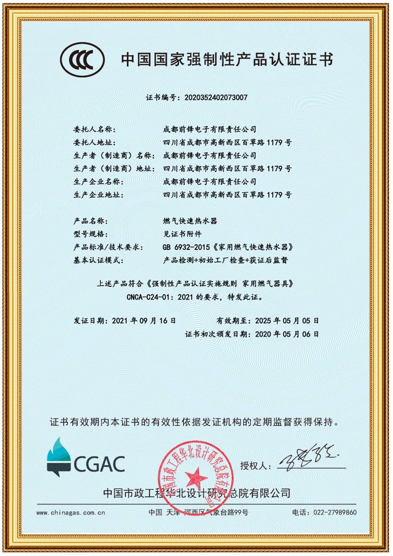 前鋒恒溫式熱水器F705